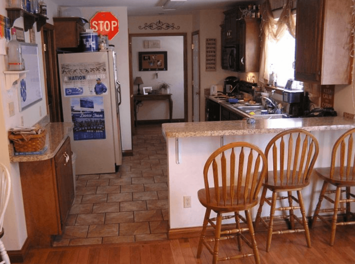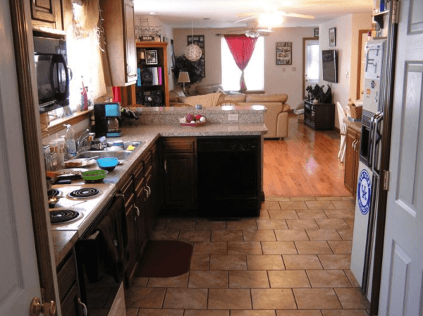 This five-bedroom, three-bathroom House is just steps away from Kroger Field, and stretches the entire first floor of a duplex that underwent a full renovation in 2010.  The open concept kitchen, dining area and living room combine to make a great hangout or study space.  The kitchen includes all-electric appliances, and the apartment features a high-efficiency all-electric central heating and A/C system.  Beautiful wood flooring can be found throughout the house with ceramic tile in the bathrooms.  The living room also opens up to a wide covered front porch, perfect for gameday tailgates.  There is also a rear entrance off a private back deck, connected to the well-lighted rear parking lot.  Each bedroom has its own closet with plenty of storage.